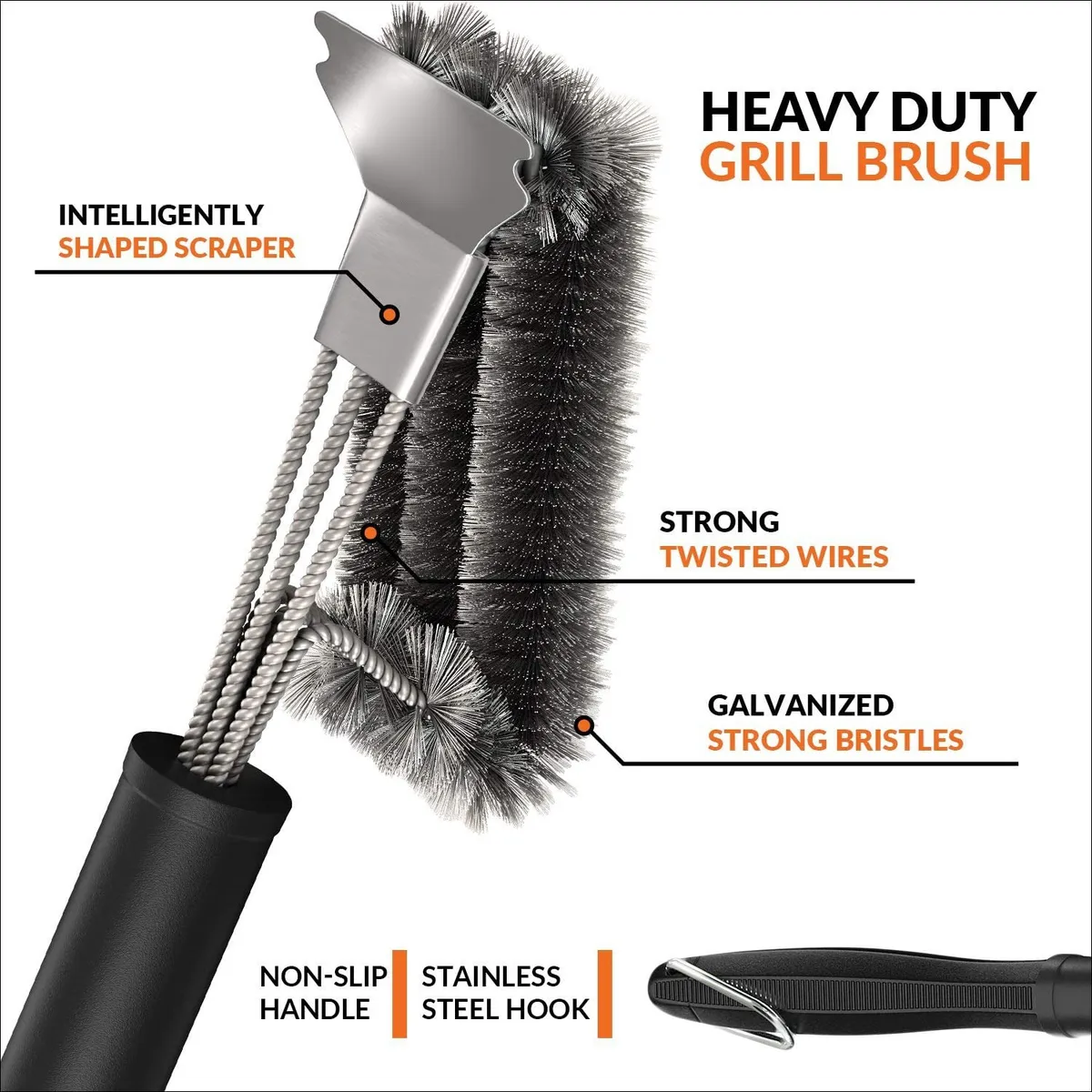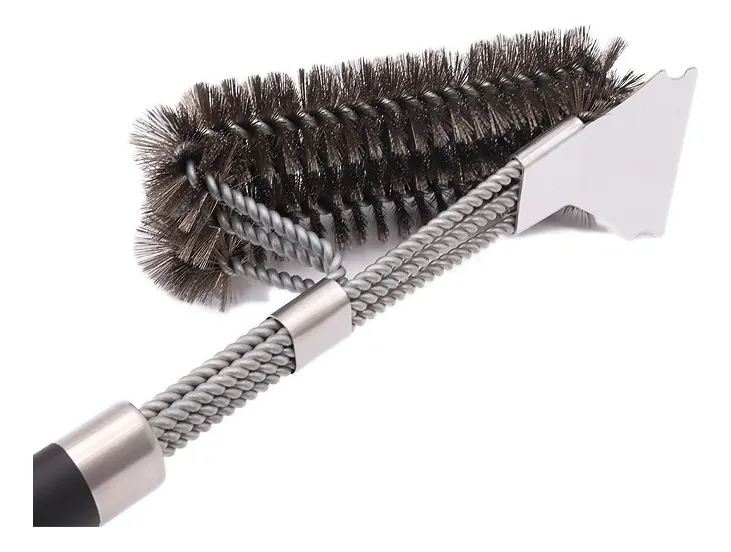 Descubre el aliado perfecto para mantener tu parrilla impecable y a punto: Nuestro cepillo para parrillas de acero inoxidable extra resistente. Ideal para cocineros exigentes, este instrumento combina robustez, seguridad y eficiencia.