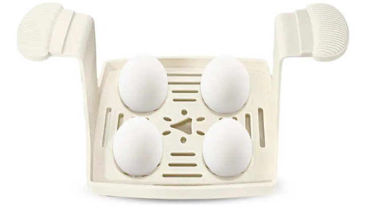 Soporte para huevos: Práctico accesorio incluido para sujetar de forma segura los huevos durante el proceso de ebullición.