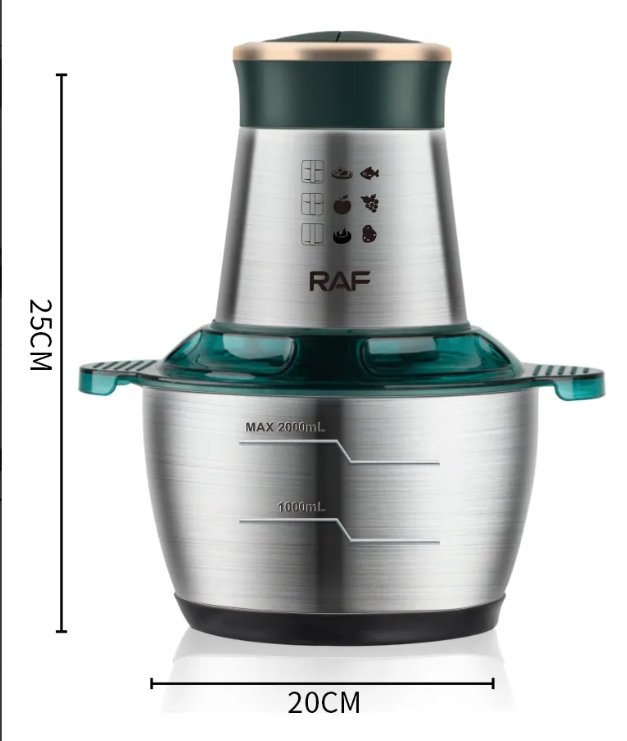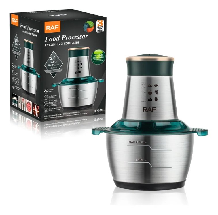 La procesadora picadora RAF Acero Inoxidable 2L es la herramienta ideal para quienes buscan eficiencia y calidad en la cocina. Con una potencia de 1000 W, este modelo R.7029 permite picar y procesar alimentos de manera rápida y efectiva, facilitando la preparación de tus recetas favoritas.