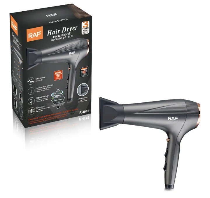 El Secador de Pelo Profesional Raf 2200W, modelo R.4015, es la herramienta ideal para quienes buscan resultados de salón en la comodidad de su hogar. Con una potente potencia de 2200W, este secador garantiza un secado rápido y eficiente, permitiendo que tu cabello luzca radiante en poco tiempo.
